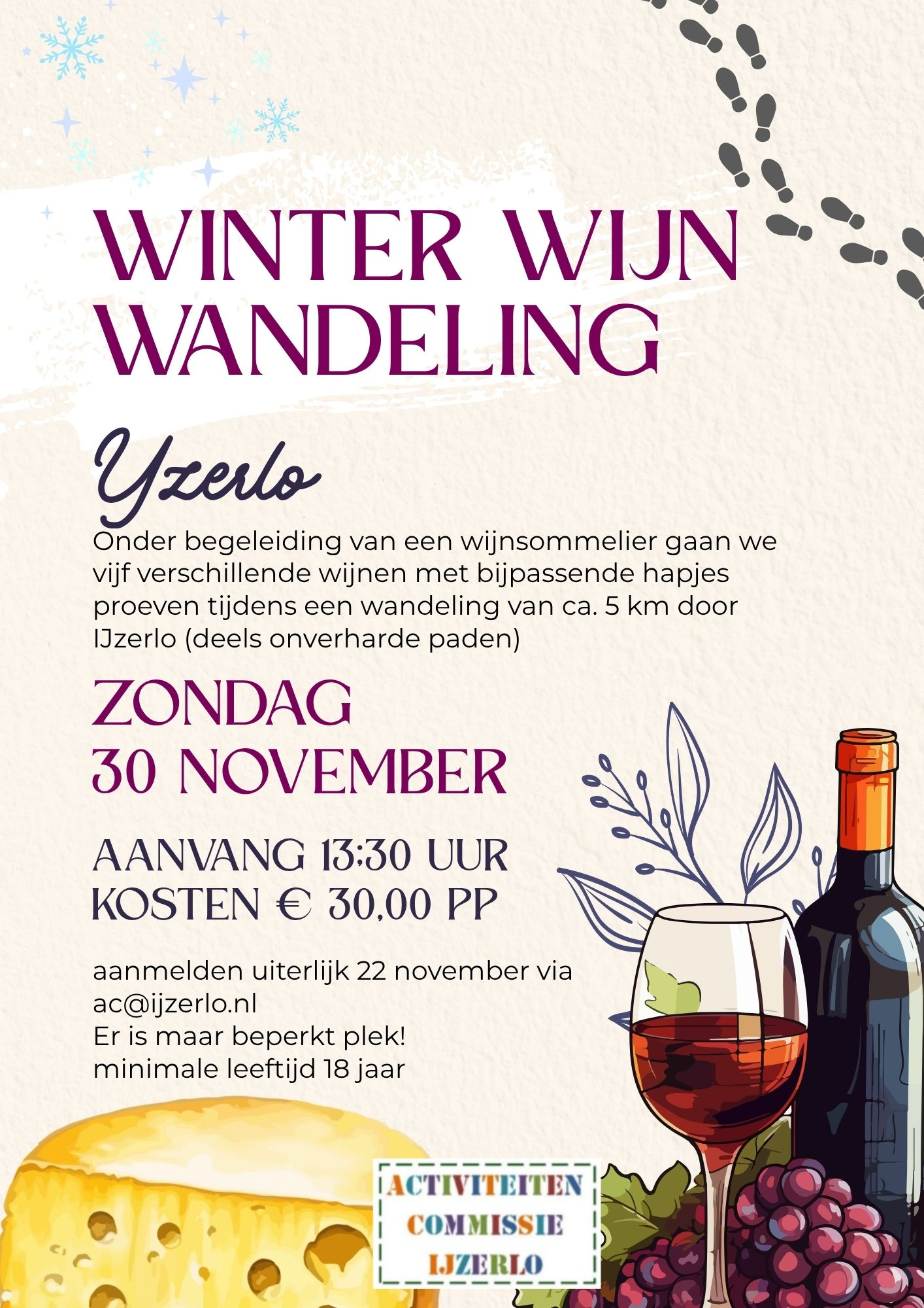 Winterwijnwandeling Winterwijnwandeling 15 15 people viewed this event. winterwijnwandelingDownloaden Registreer voor evenement E-mail je informatie om voor dit evenement te registreren, ac@ijzerlo.nl Registreer via webmail: Gmail / AOL / Yahoo / Outlook Datum en tijd 30-11-2025 om 14:00 naar 30-11-2025 Einddatum registratie 22-11-2025 Locatie dorpshuus Deel met vrienden Facebook Twitter LinkedIn Xing Pinterest